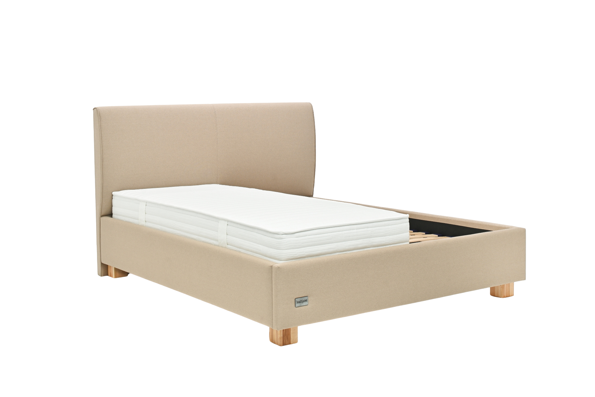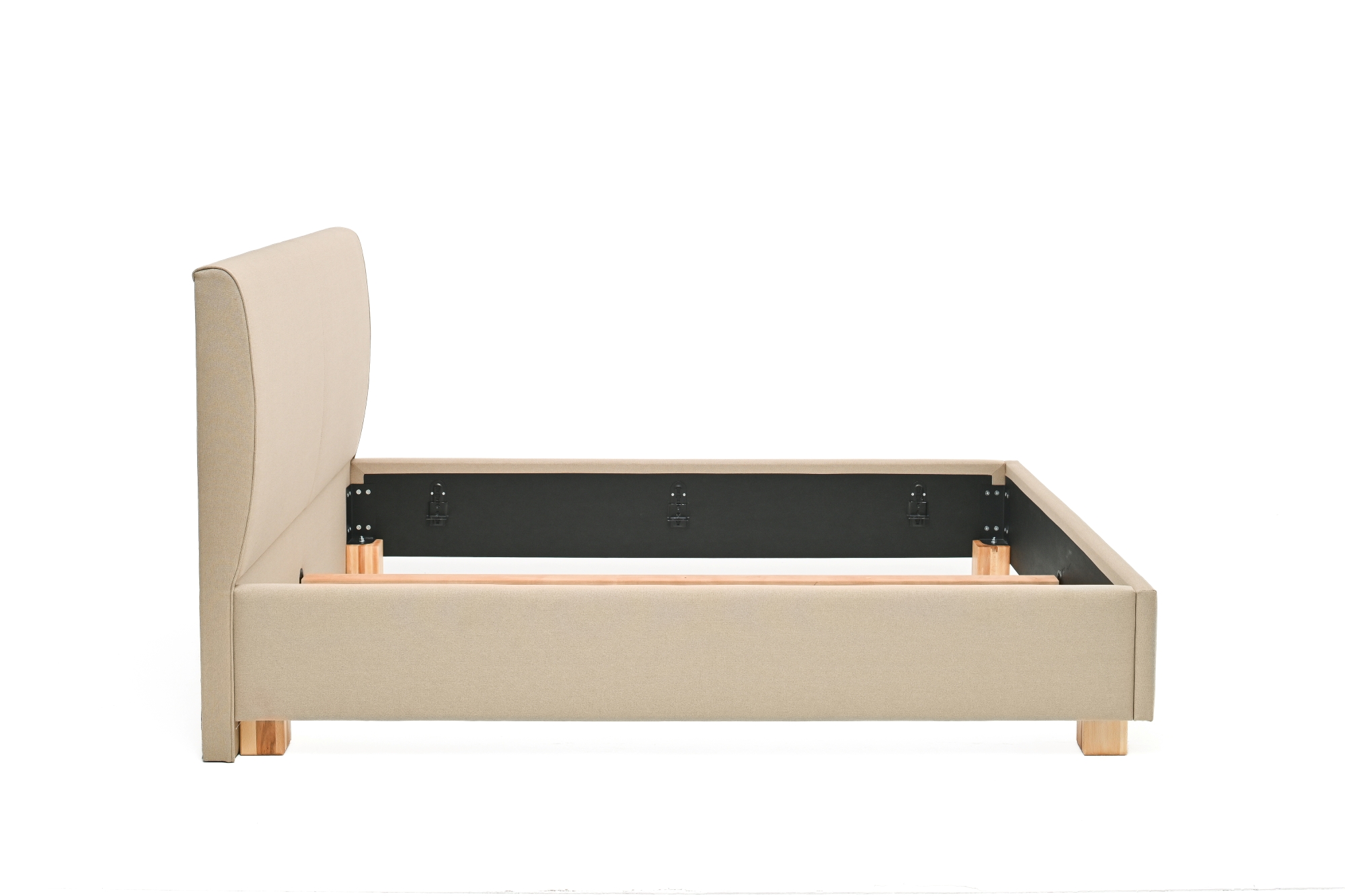 Stoji na četiri masivne bukove nogice modernog dizajna, a sigurnost i stabilnost podloge za spavanje osiguravaju metalni okovi i nosači za latofleks. Kod širina 140 cm i više ugrađena je masivna srednja bukova letva koja ravnomjerno raspoređuje težinu i pruža dodatnu čvrstoću krevetu. Uzglavlje visoko 111 cm i debljine 13 cm, radi unaprijeđenja statike kreveta naslonjeno je na pod, te uz konstrukcijski zahtjevan vizualni identitet proizvoda u kombinaciji sa završnim materijalom ističe konceptualni identitet svojstven samo Vama! Ležište u unutrašnjem dijelu kreveta na koje se postavlja latofleks ili podnica je moguće spuštati ili dizati u 4 različita nivoa, tako da na ovaj način možete po potrebi prilagoditi ukupnu visinu podloge za spavanje.